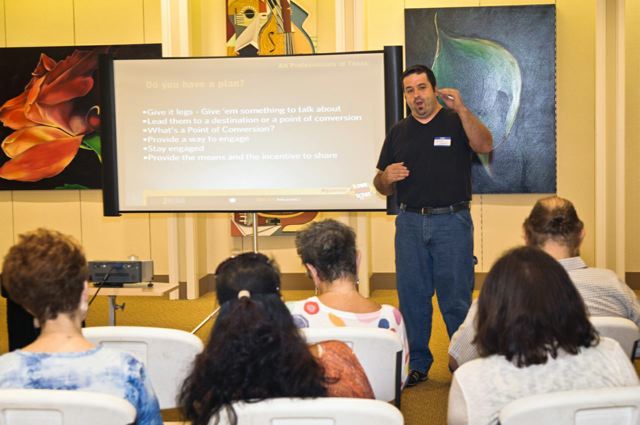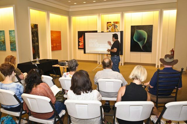 The Artists' Roundtable serves as a casual and fun forum for sharing, meeting, mingling and creating a dialogue with fellow APT artist's and other art insiders. This is about artists nurturing artists ~ We encourage you to bring photos on your preferred device or laptop and share your latest work, recent endeavors, websites, or questions to pose for our creative brainstorming sessions. Artful camaraderie, wine and food for thought, body and mind at Times Ten Cellar. Free for APT Artist Members, Patrons and their guests, with menu and cash bar available. Please stay tuned for upcoming date and time of our next seasonal Artist's Roundtable... Sunday August 26th, 3 - 5pm, 2012 Saturday June 30th, 4 - 6pm, 2012 Times Ten Cellers6324 Prospect Ave, Dallas, TX 75214 View Map Get Directions TO TWEET OR NOT TO TWEETOn Saturday July 14th, Giovanni Gallucci spoke on the In's and out's of social media marketing as it applies to visual fine arts at Gallery at Midtown in Dallas, TX, and explained why today's contemporary fine artists need to embrace social media marketing and why it's it critical to your success in today's fine art market, and how to develop a social media marketing strategy to drive collectors, gallerists and dealers to notice you. He discussed the best outlets for visual fine arts, and how to manage your day-to-day promotions/blogging and stay organized with social media. Giovanni is a recovering web programmer turned online brand strategist and internet journeyman who develops strategy for online marketing and audience development for forward-thinking clients in music, media, faith, film, TV, tech & those interested in breaking new ground online. He is available for questions at www.liveloudtexas.com.